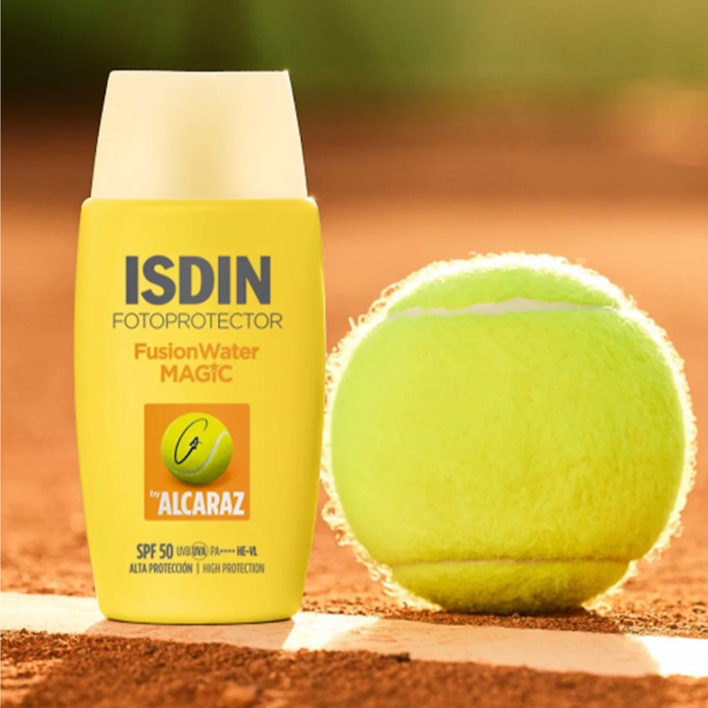 alcaraz isdin fusion water magic sunscreen cream