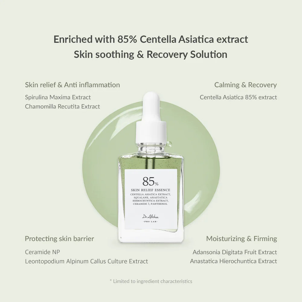 • حاوی 85 درصد عصاره سنتلا آسیاتیکا: به کاهش قرمزی، التهاب و حساسیت پوست کمک می‌کند.